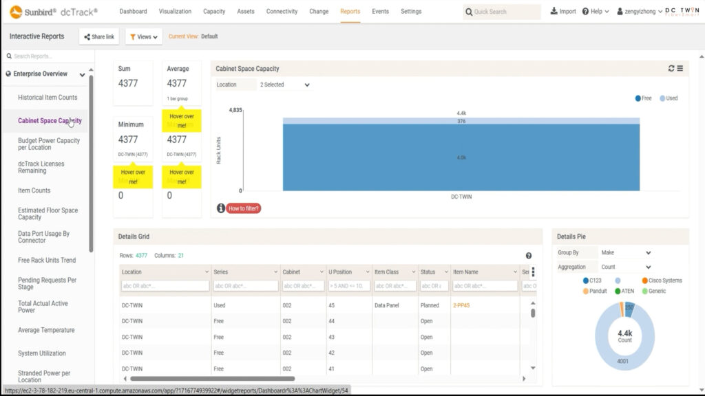 Admins are always looking for ways to save money and increase efficiency with their expensive resources, such as servers. With the DC Twin service, we can provide details to your team on which servers are installed and where and how they are connected. And we can also tell you which rack unit spaces are free to utilize throughout the data center. With this critical information, it is much easier to consolidate and manage your valuable server assets dynamically.
